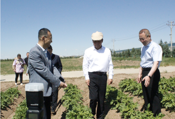 在試驗田前,冀福善向段志強一行介紹,公司為科學種植,合理輪茬,從2015年開始進入燕麥產(chǎn)業(yè),實施“馬鈴薯+燕麥”雙輪驅(qū)動發(fā)展戰(zhàn)略,在察右中旗成立子公司——內(nèi)蒙古陰山優(yōu)麥食品有限公司。目前,陰山優(yōu)麥已完成投資2.4億元,年產(chǎn)2萬噸燕麥香米、2萬噸燕麥片、2000萬支燕麥杯、6000噸燕麥粉(莜面)和2萬噸藜麥米加工生產(chǎn)線已建成并投入使用,陰山優(yōu)麥是“自治區(qū)農(nóng)業(yè)產(chǎn)業(yè)化重點龍頭企業(yè)”、“自治區(qū)扶貧龍頭企業(yè)”。同時,公司依托自身在加工薯種植管理技術、產(chǎn)品質(zhì)量、倉儲能力等方面的優(yōu)勢,于2019年初在察右中旗成立子公司——內(nèi)蒙古蒙薯食品科技有限公司,計劃投資1.5億元,建設“年產(chǎn)8000噸低溫油炸薯條及2000噸果蔬脆片加工項目”,全力打造烏蘭察布市地標性產(chǎn)品,創(chuàng)建全國大的低溫油炸薯條、果蔬脆片深加工企業(yè),已于今年投產(chǎn)。