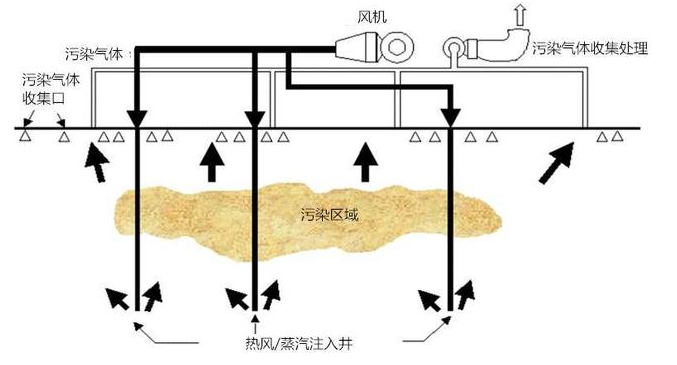 1、物理修復技術。物理修復主要針對有機污染物,修復技術包括蒸汽浸提、熱脫附、微波加熱等,目前已有苯系物、多環(huán)芳烴、多氯聯(lián)苯以及二噁英等的土壤修復的工程應用。蒸汽浸提技術可以進行原位或異位修復,是通過降低土壤孔隙的蒸汽壓,將土壤中的污染物以蒸汽形式去除。適用于高揮發(fā)性化學污染土壤的修復,如汽油、苯和四氯乙烯等。具有可操作性強,設備簡單,容易安裝,對土壤結構破壞小,處理周期6~24個月。但只能處理不飽和的土壤,對飽和土壤和地下水的處理還需要其他技術。熱脫附修復技術指利用高溫所產生的一些物理和化學作用(揮發(fā)、燃燒、熱解)去除或破壞土壤中有毒物質的過程。一般用于處理有機污染的土壤(VOCs、SVOCs、農藥等)及部分重金屬污染的土壤(如揮發(fā)性金屬汞),具有快速、治理效果好、適用范圍廣等特點。但熱處理技術成本較高,相關設備及修復過程需要大量的人力物力與時間,一定程度上限制了該技術的推廣應用。