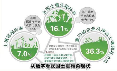 一、土壤污染現(xiàn)狀。2005年4月-2013年12月,環(huán)保部與國土資源部首次開展了全國土壤污染狀況調查,根據(jù)2014年《全國土壤污染狀況調查公報》調查結果顯示,我國當前的土壤污染超標率達到16.1%,并且耕地污染超標率達到19.4%,林地及草地的污染超標率高于10.0% 以上。2016年5月28日,國務院印發(fā)了《土壤污染防治行動計劃》,簡稱"土十條"。"土十條"的發(fā)布被認為是土壤修復事業(yè)的里程碑事件。隨著"土十條"的發(fā)布,國家陸續(xù)出臺了一系列法律法規(guī)及政策文件,如:《污染地塊土壤環(huán)境管理辦法(試行)》(2017年7月1日施行)、《農用地土壤環(huán)境管理辦法(試行)》(2017年11月1日施行)、《工礦用地土壤環(huán)境管理辦法(試行)》(2017年12月17日完成第一次征求意見)等等。這預示著土壤污染同大氣污染及水污染的防治同樣重要,土壤污染修復工作的開展,將減緩當前土壤環(huán)境惡化的加劇,為推進生態(tài)文明建設,加快建設美麗中國添磚加瓦。