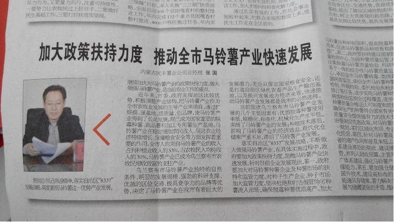 張國(guó)表示,民豐薯業(yè)將堅(jiān)定貫徹總書(shū)記講話精神,落實(shí)自治區(qū)“8337”發(fā)展戰(zhàn)略,充分發(fā)揮龍頭企業(yè)帶動(dòng)、幫扶作用,為推動(dòng)我市馬鈴薯產(chǎn)業(yè)快速發(fā)展做出新貢獻(xiàn)。